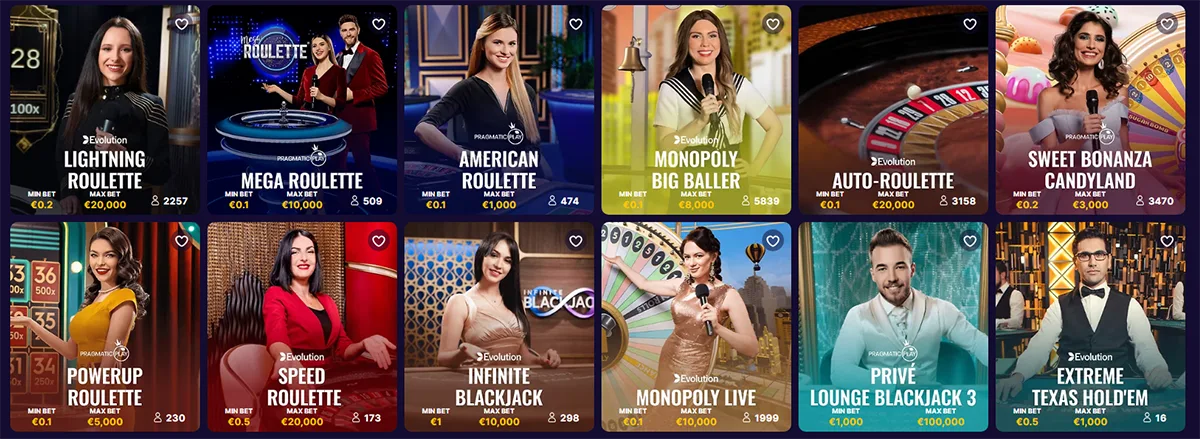 - Live Casino: HD streaming with Evolution Gaming dealers