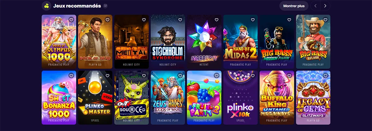 Les nouvelles additions incluent souvent des améliorations techniques comme des animations 3D avancées et des bandes sonores immersives. Nous proposons également du vidéo poker en complément de notre collection de machines à sous pour diversifier l'expérience de jeu.